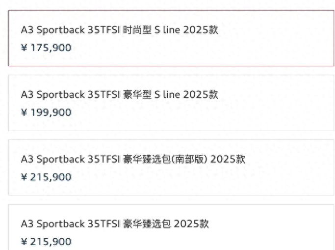 A3 Sportback35TFSI豪华型 S line 2025款¥199,900
