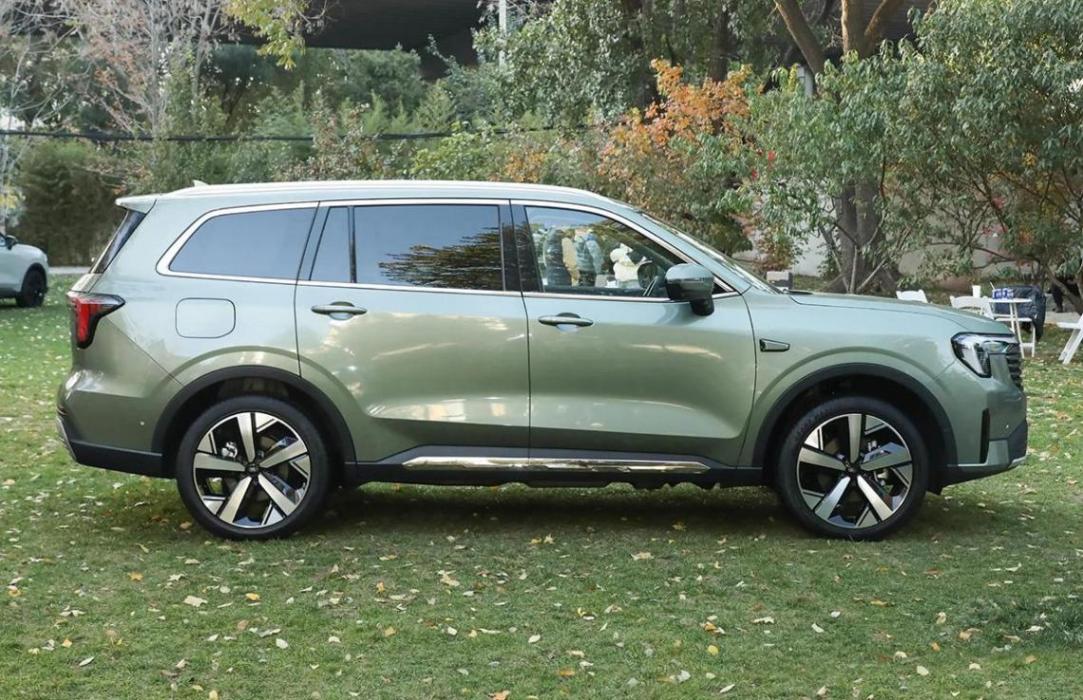 车身侧面部分的整体造型相比燃油版没有太大的变化,整体造型很硬朗,车身下部隆起的折角造型很有力量感,黑色的车身下包围上还带有镀铬装饰。尺寸方面,新车的长宽高分别为4920/1930/1760mm,轴距为2865mm,车身长度和高度相比燃油版有所增加,宽度和轴距保持一致。