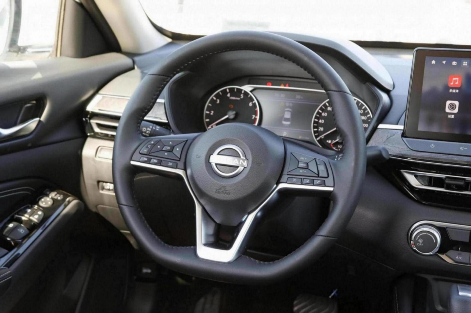 内饰方面,在车内的中控台区域加入了木纹饰板进行装饰,同时配备有平底式多功能方向盘和机械换挡杆,搭配一些平直线条的设计,凸显了一些运动氛围。此外,车内还配备了7英寸全液晶仪表和12.3英寸的中控屏,并内置了Nissan Connect超智联系统,支持手机APP远程控车、AR实景导航、车联网、声纹识别、Wi-Fi热点和K歌功能等等。