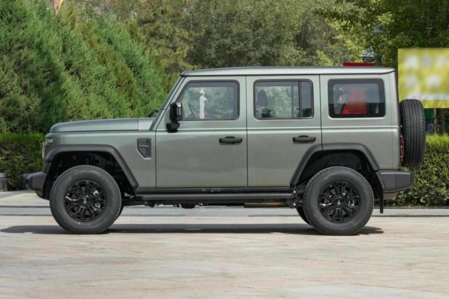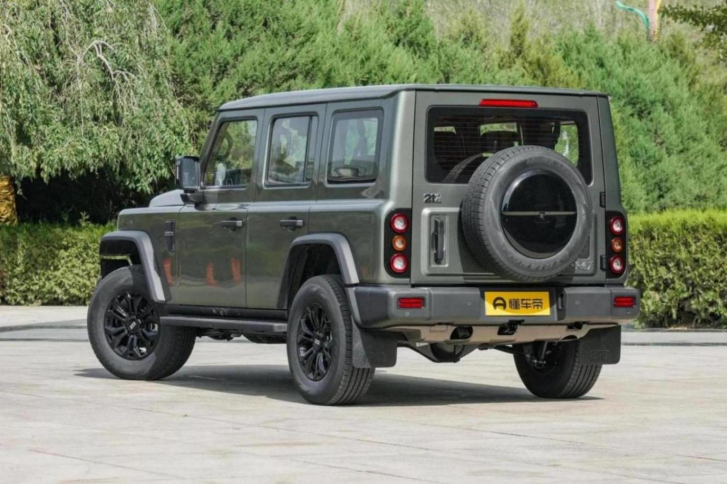 车身侧面,短前/后悬设计搭配外扩式轮眉和侧踏板,看起来颇为硬派,且提升了车辆的通过性。车尾采用了侧开式尾门的设计,并配备有外挂式备胎,搭配粗壮的后保险杠和“212”字母标识,提升了整车的辨识度。