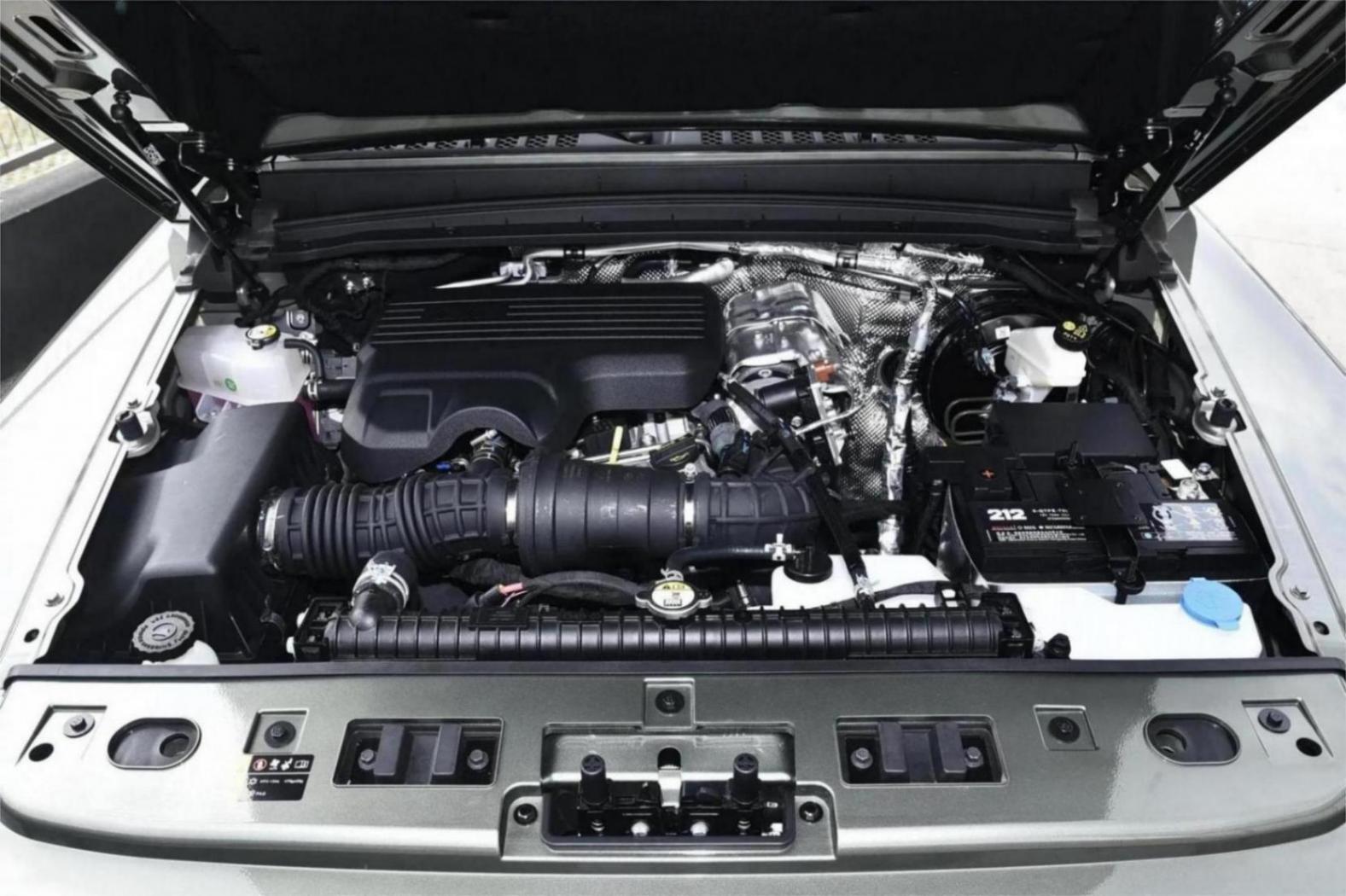 而在动力方面,新车搭载了2.0T发动机与8挡手自一体变速器,最大功率达到185kW,峰值扭矩为410N·m,需要加注92#汽油,WLTC工况综合油耗为10.9L/100km。同时,它采用了非承载式车身结构,搭配前后整体桥式非独立悬架和分时四驱系统,带有中央差速器锁止功能。