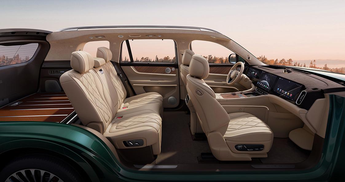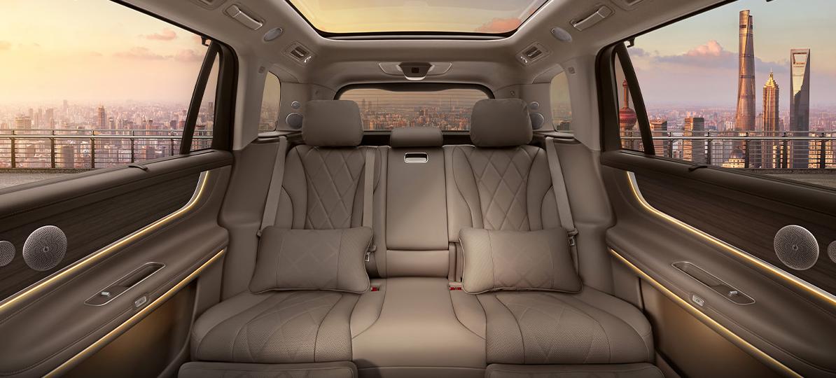 此外,6座座椅的配置非常全面(5座也可以选择了),座椅加热,通风,按摩一应俱全,甚至车载KTV,大床模式更是做到了标配。为了进一步提升豪华质感,新车不仅匹配了多色豪华车内氛围灯,主动式的氛围灯,还拥有华为音响打造的25个扬声器,搭载了车载冰箱,车内香薰系统。