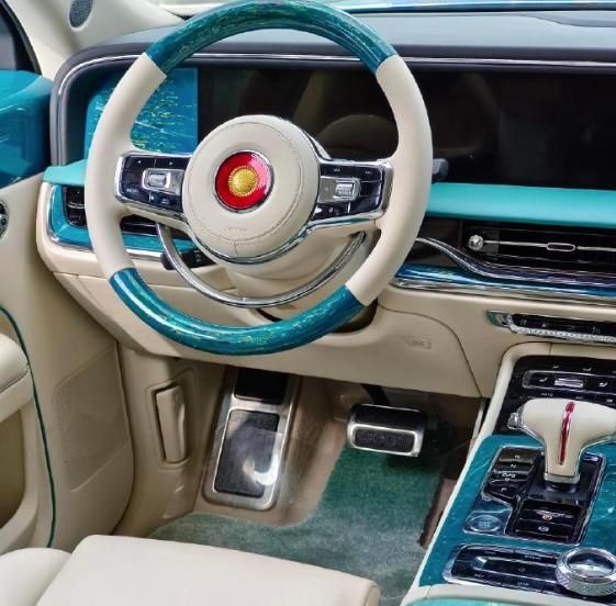 内部设计与外观有着截然不同的设计,内饰更加彰显了科技感,采用了贯穿样式的三屏设计。大量的真皮,豪华的石英钟,双色多功能的方向盘,大量的真皮覆盖,档次感凸显。此外,我们从按键上看到这款红旗国礼其实是带有智驾系统的。
