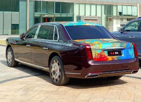侧面来看,修长的车身姿态,目测超过了5.4米,匹配了迈巴赫同款的镜面轮毂设计。至于尾部,除了拥有大量的金属装饰件以外,传统复古的红旗尾灯,双边共双出的方形排气管设计,一应俱全。