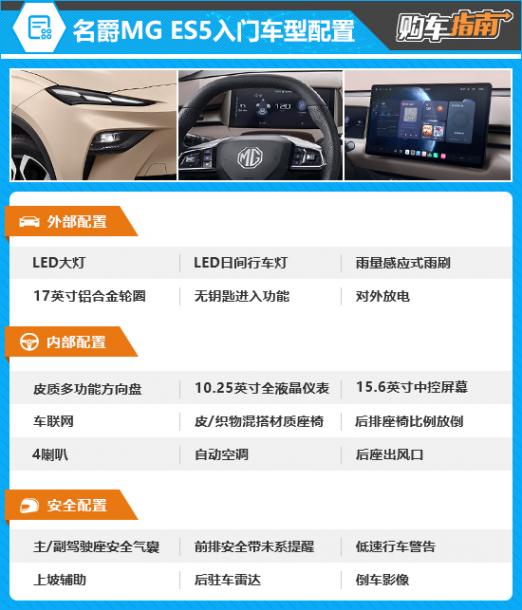 名爵MG ES5入门版车型为425pro 后驱版,售价为11.69万元。客观来说,其配置表现还算不错,例如LED大灯、10.25英寸全液晶仪表以及15.6英寸中控屏等,均为全系标配。不推荐的理由主要有两点,首先是其CLTC纯电续航里程仅有425km,并未达到同级别主流水准,容易出现里程焦虑。再有就是舒适性和安全性配置方面有所缺失,因此综合考虑之下,性价比不高。