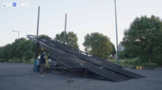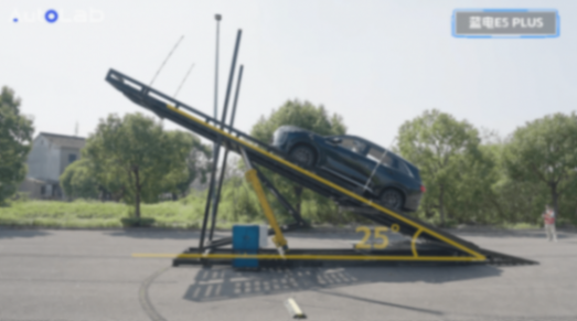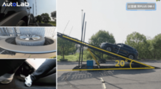E5 PLUS的表现与宋PLUS DM-i类似,在25度时出现前轮轻微打滑的现象。爬架角度增加到26度时,宣告爬坡失败。
