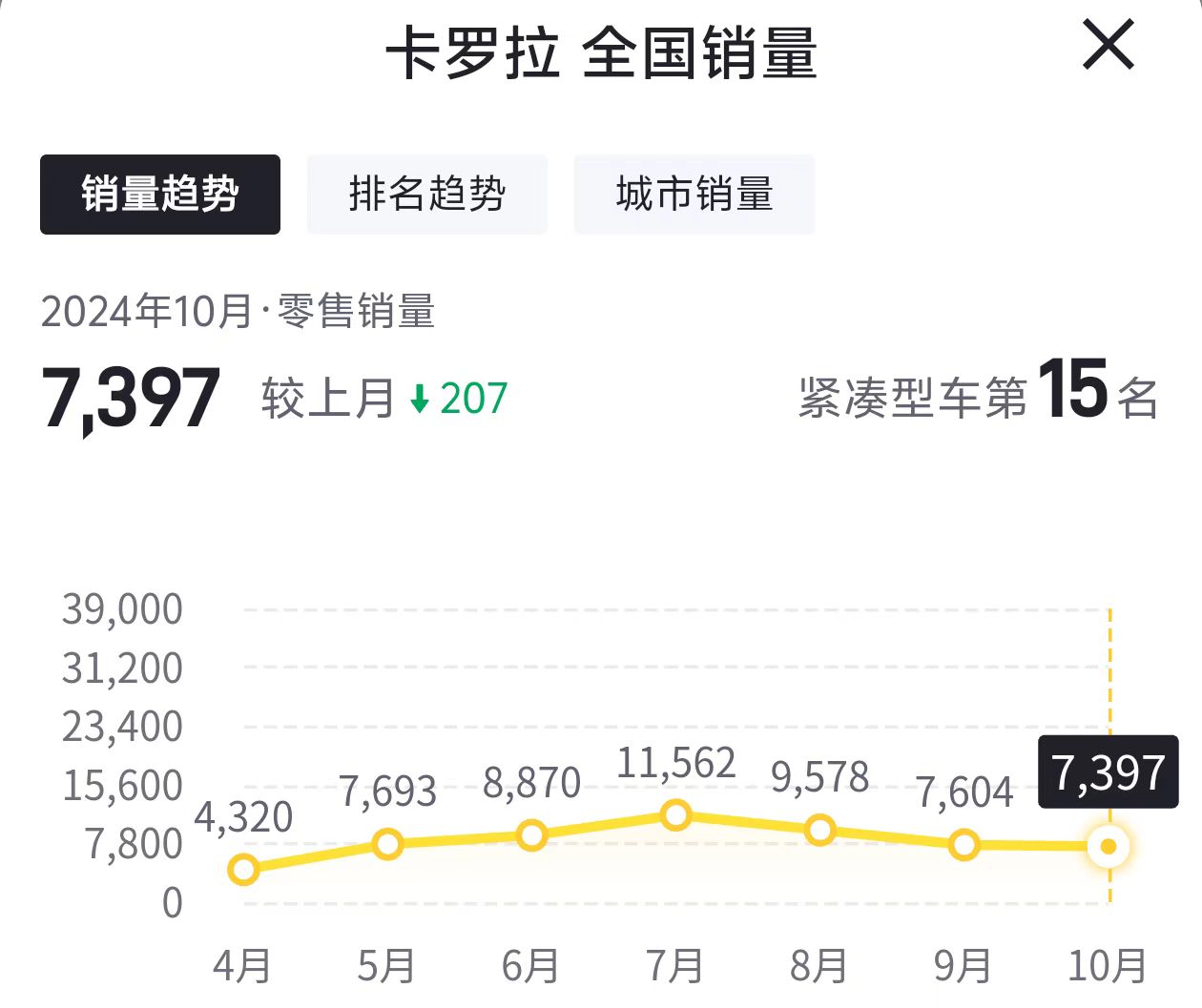 从销量来看,卡罗拉10月份卖出7397辆,1.2T车型在整个卡罗拉车系中属于“中配”,销量占比并不算大,如果你用车频率比较高的话,更建议选择1.8L双擎车型,不仅油耗更低,驾驶体验也会更高。