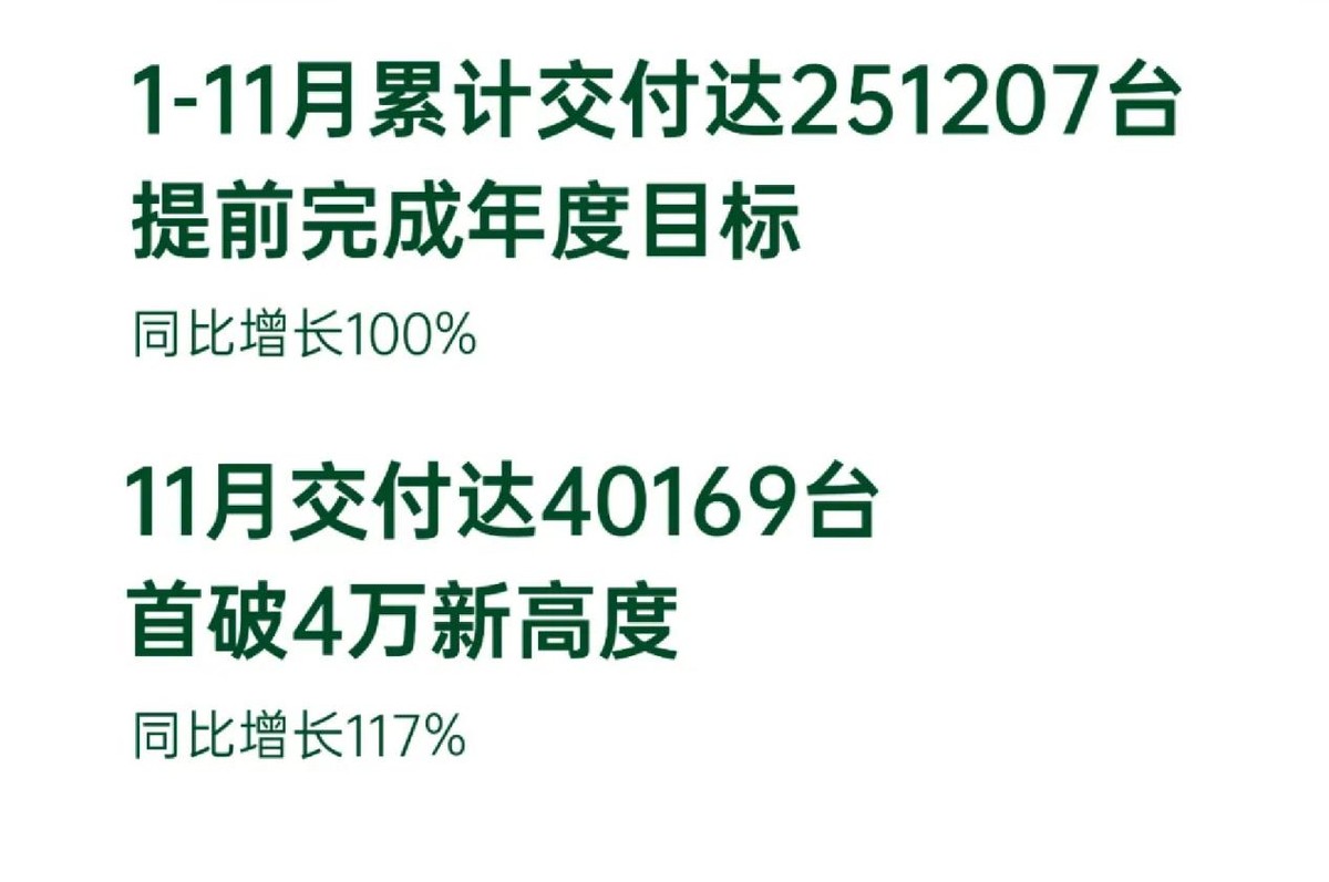 除了比亚迪外,新势力品牌中的零跑汽车也成为了今年的一匹黑马,通过加大对增程式汽车的布局,不仅稳住了零跑汽车的销量,更是让零跑汽车实现了破纪录的成绩。11月份,零跑汽车单月销量首次突破了4万辆,成为继理想、问界后第三家月销破4万辆的新势力品牌。今年前11个月,零跑汽车累计销量也达到了251207辆,提前完成了25-30万辆的销量目标,如果12月份继续发力,甚至还会创造新的销量纪录。
