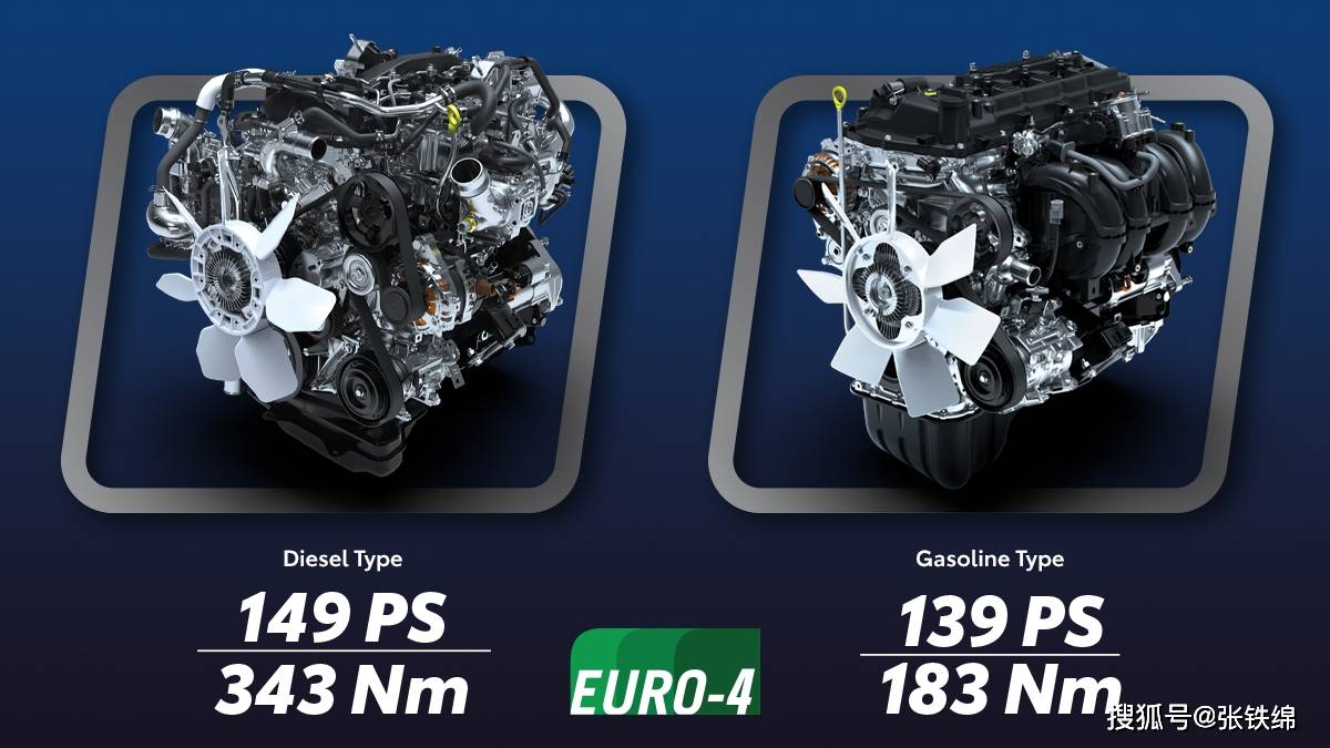 动力配置部分,新车和皮卡版本一样,搭载了2.0升汽油发动机和2.4T柴油发动机两种动力。其中2.0升汽油发动机最大功率为102千瓦,峰值扭矩183牛·米;2.4T柴油发动机最大功率110千瓦,峰值扭矩343牛·米。传动系统匹配的是5速手动或6速自动变速箱,虽然外观使用了硬派越野风格,但是全系都是后轮驱动,没有四驱版本。