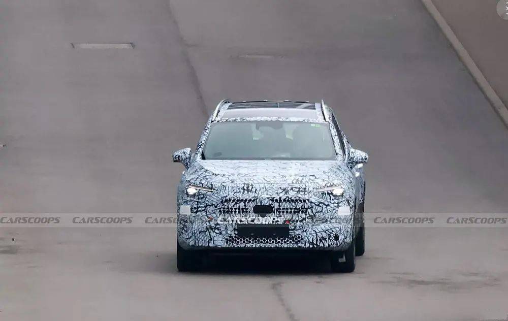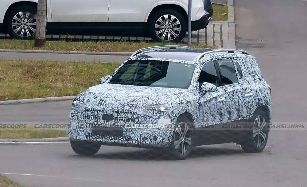 全新GLB的前脸有点近似GLC的风格,全新的大灯采用流线的造型,上部一字型的日行灯,下部两侧透镜大灯。奔驰经典的中网会继续得到保留,但可能样式会与现款车型有很大出入。车辆顶部配备了全景天幕,行李架得到保留。