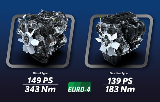 Hilux Rangga SUV提供了两种动力选择,分别为2.0L汽油发动机和2.4T涡轮增压柴油发动机。其中,2.0L汽油发动机的最大功率为102kW,最大扭矩为183N·m; 2.4T涡轮增压柴油发动机的最大功率为110kW,最大扭矩为343N·m。传动系统方面,该车匹配5速手动或6速自动变速箱,全系车型均为后轮驱动。