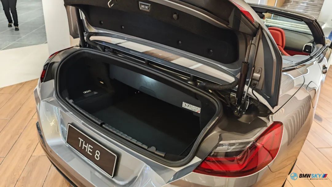 小编瞅了一眼后排空间,呃...坐小朋友或者放包是可以,但成年人长时间乘坐肯定是不行。敞篷机构和尾厢盖是完全独立的,后备厢打开之后标准容量为420升,放倒第二排座椅之后可以获得一个更大的装载空间。