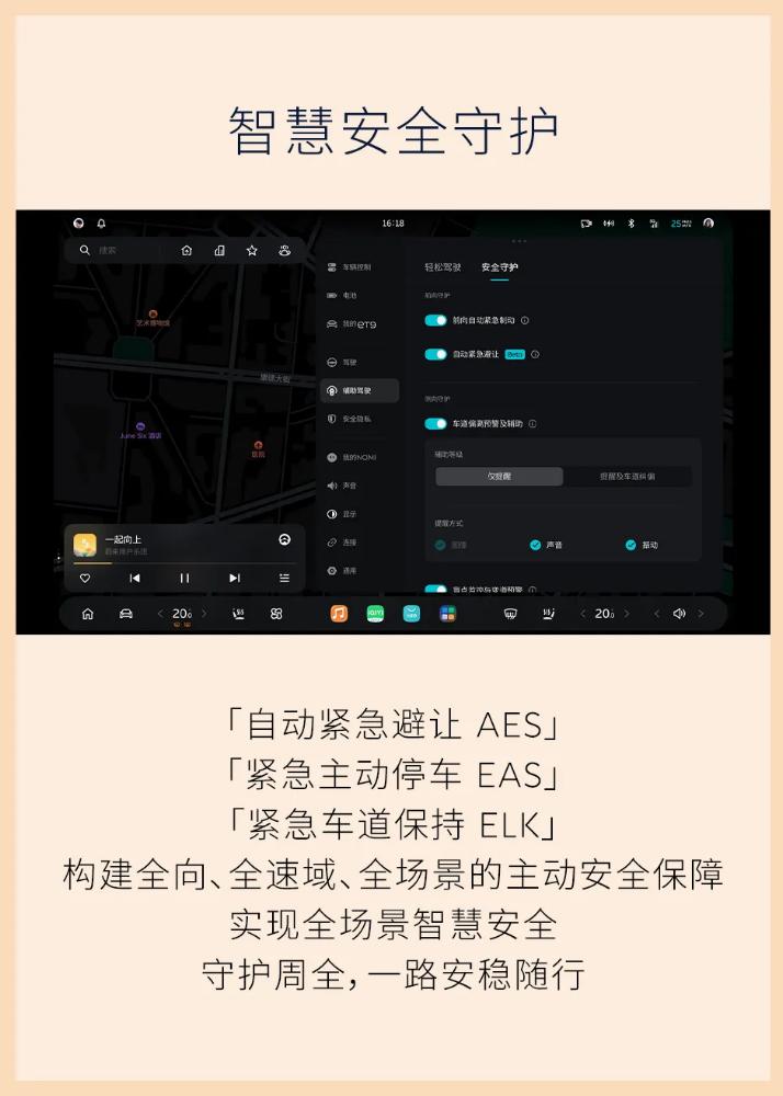 同时,系统还新增了自动紧急避让 AES、紧急主动停车 EAS 和紧急车道保持 ELK 三项主动安全功能,构建起全向、全速域、全场景的安全防护体系。