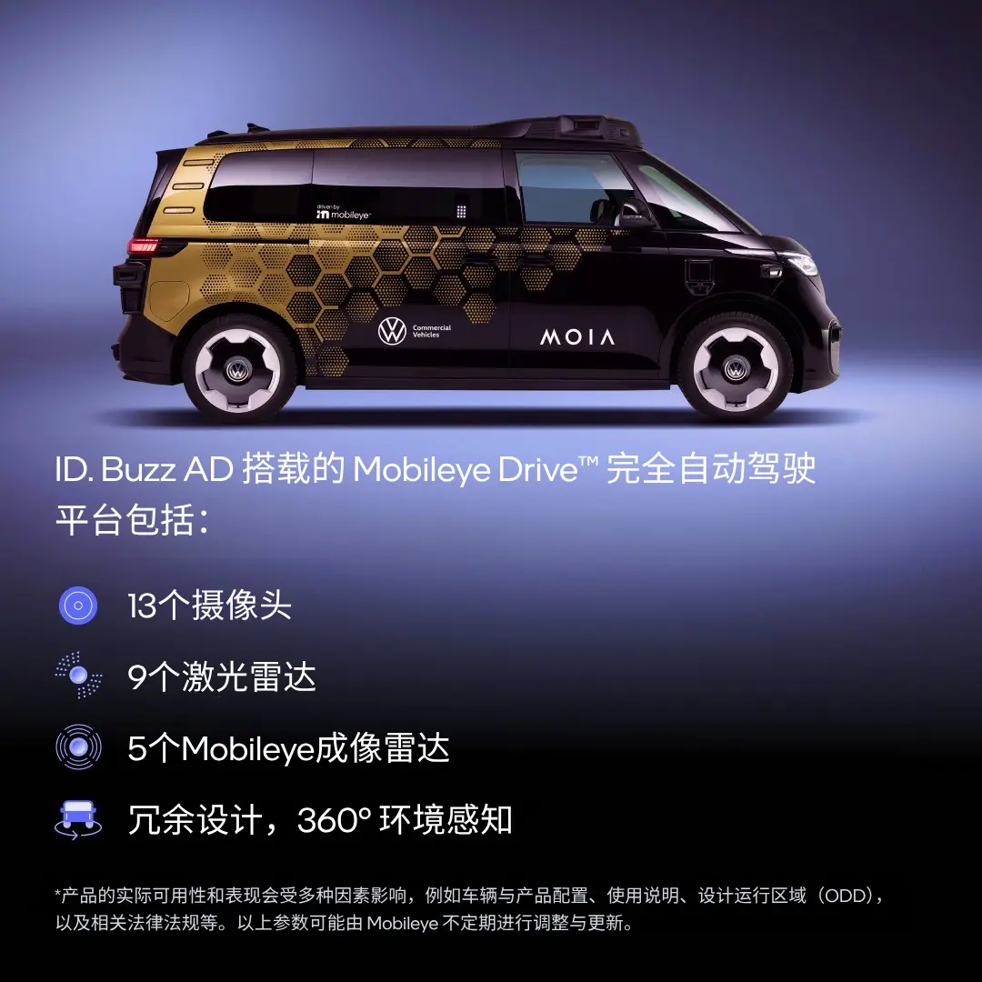 大众汽车首款量产的完全自动驾驶车型,由Mobileye Drive提供技术支持。这一发布标志着欧洲和美国Robotaxi(完全自动驾驶出租车)规模化运营迈出关键一步。