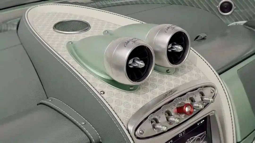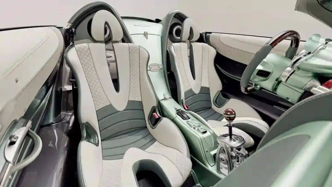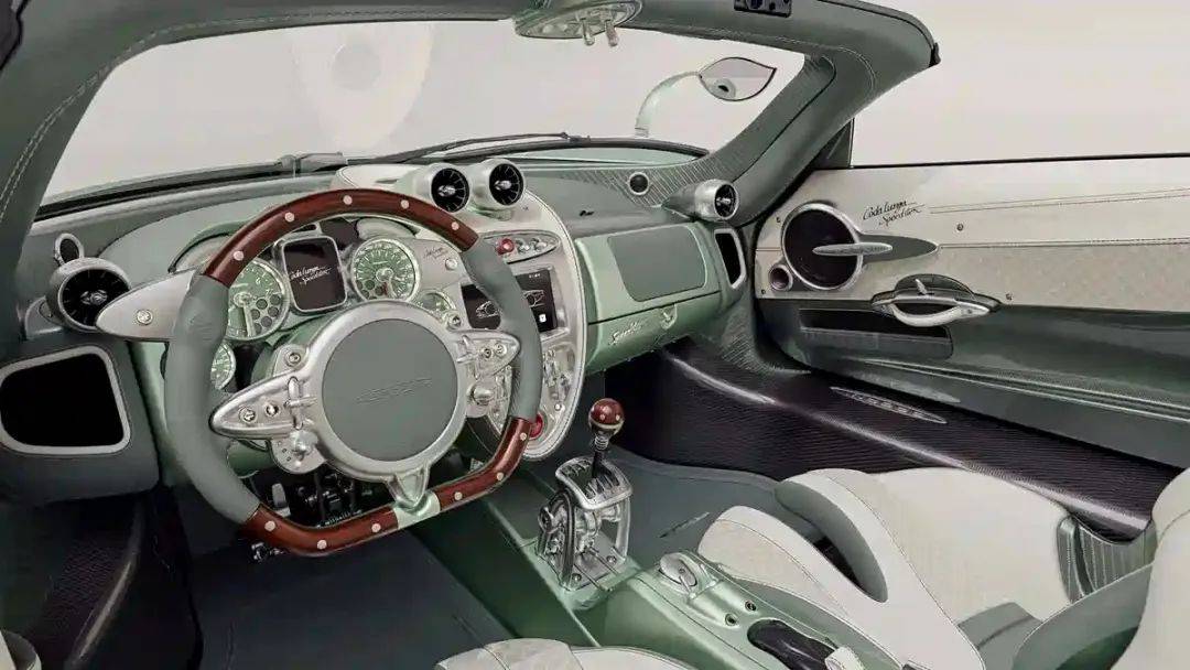 进入车内,新车在门板、中控台以及座椅等部位,均融入了全新的刺绣元素,这些刺绣的灵感来源于帕加尼标志性的四出排气布局。同时,为了营造更加浓郁的复古氛围,新车的方向盘和挡杆球头均采用了实木材质进行装饰。