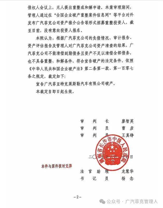 经历了销量断崖式下滑、财务状况恶化、中外股东分歧等打击的广汽菲克,因已无重整可能,7月8日正式宣告破产。
