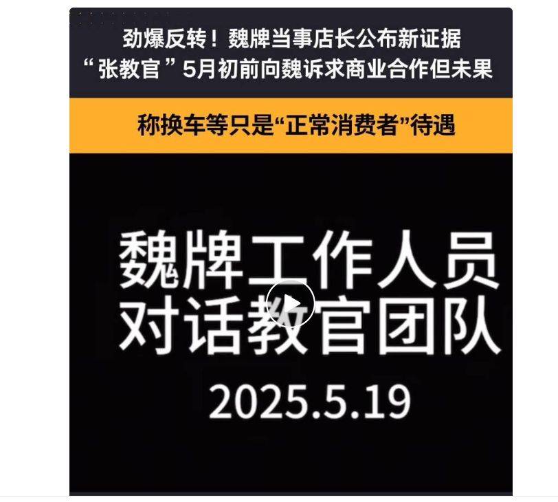 在5月6日购车前,张教官团队已主动联系魏牌寻求商业合作;5月16日新车突发“失速”故障;