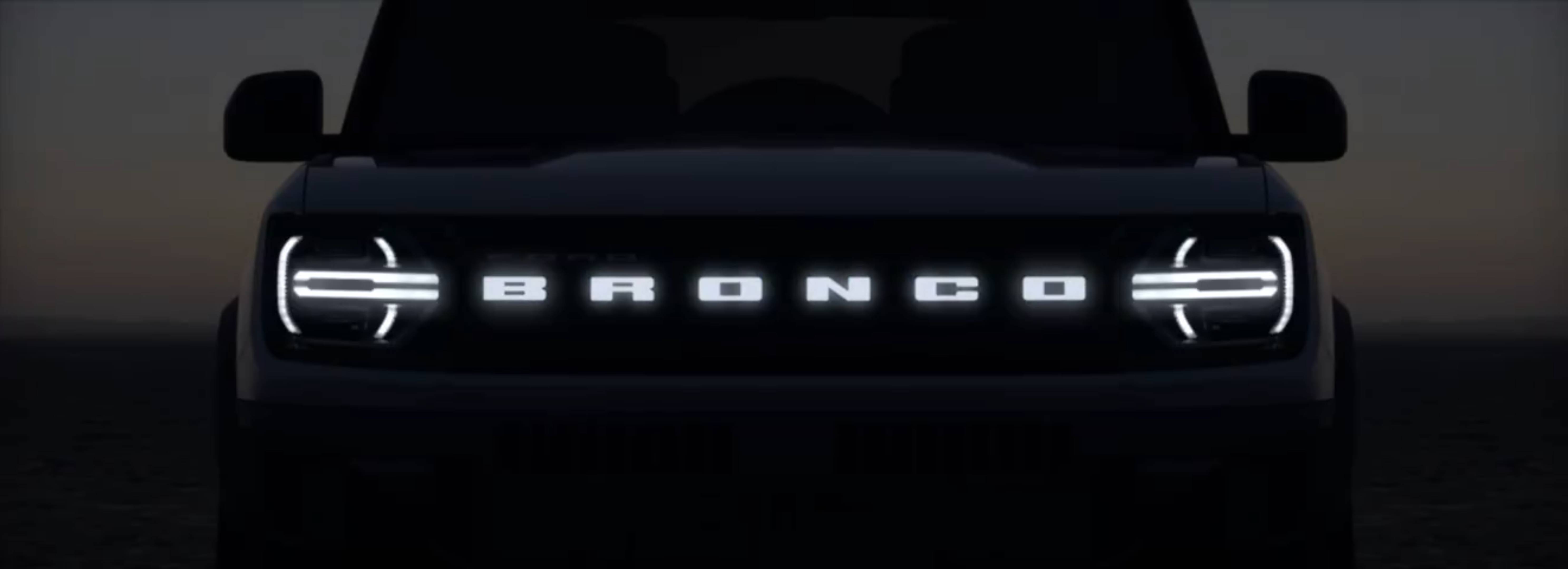 从预告视频中可以看出,福特烈马新能源车头方正,继续沿用现款车型的方盒子设计语言,在中网部分采用了发光的BRONCO英文标识,日行灯部分依然采用经典的圆形+横杠的设计,圆形灯环从中间断开,形成括号样式,一字型灯带在内部发光部分从中间一分为二,细节方面有所改变,在整体点亮后辨识度极高。