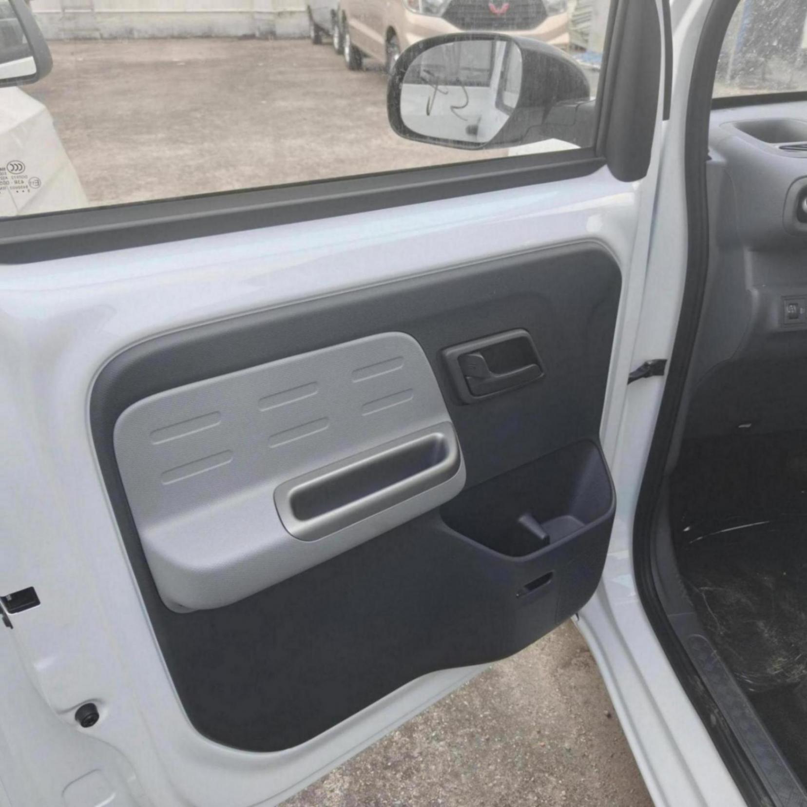 从实车图来看,新车外观造型基本保持不变,方正的封闭式车头两侧配备不规则大灯组,并将升级为LED光源。底部突出的前包围配合竖置导风槽以及梯形下格栅,又增添了不少运动气息。车身尺寸长宽高分别为3685/1530/1765mm,轴距2600mm,“方盒子”造型配合侧滑门,与日本K-Car车型的风格类似,并采用13英寸半封闭式轮毂,提供星耀黑、极地白、晴空银三种配色可选。