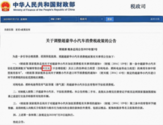 7月17日,财政部发布了一则调整超豪华小汽车消费者政策的公告。直接将豪车税的门槛从130万降到了90万,并且一口气将服务费、装潢费这些超豪华品牌常用的“套路”全数划进了计税范围。简单来说,想擦边也没门路了。