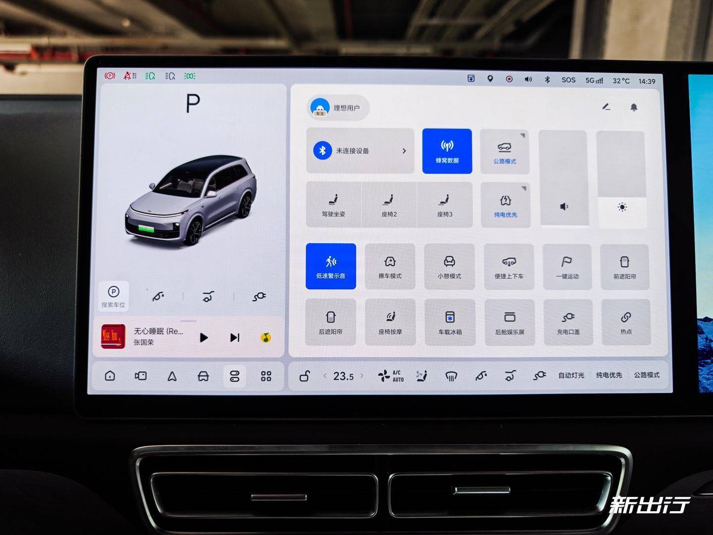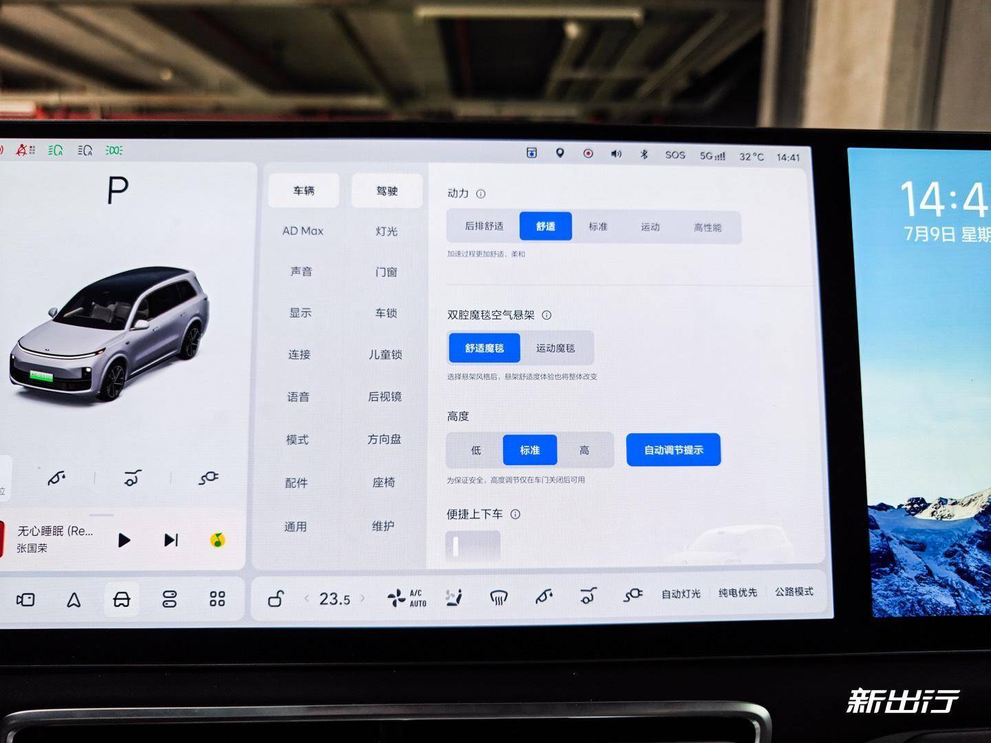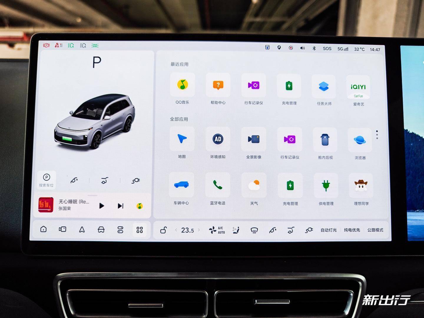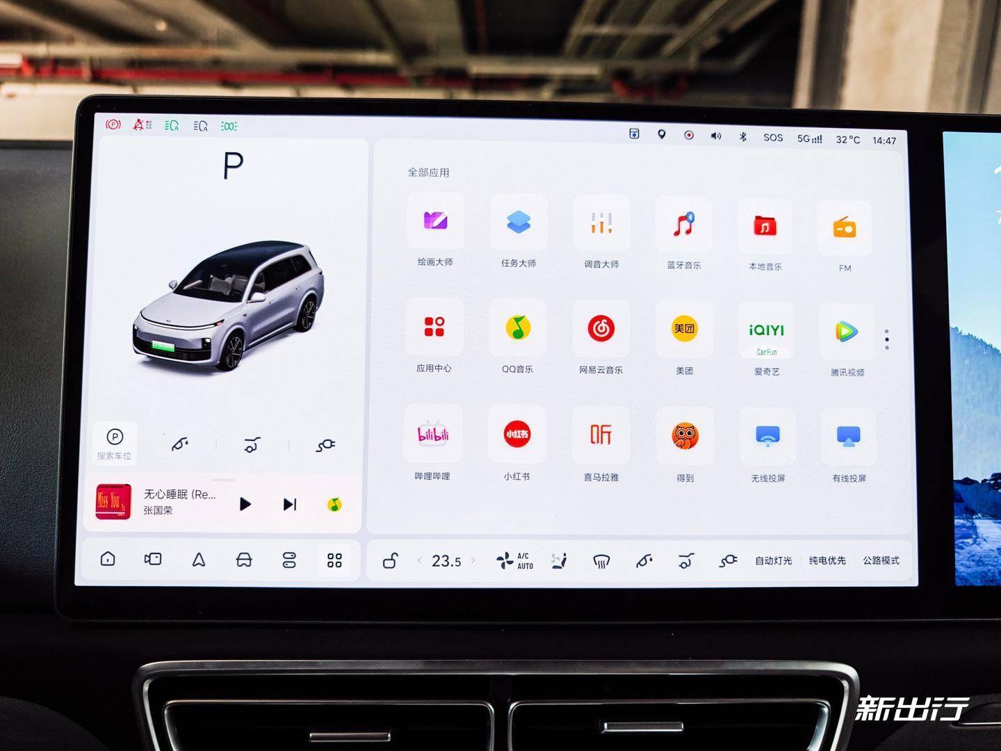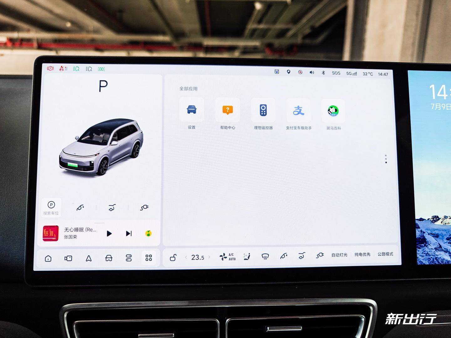 最后是后舱屏。L9 智能焕新版的后舱屏其实 UI 上是和副驾屏基本一致的,约可以看成是一块放大的副驾屏,