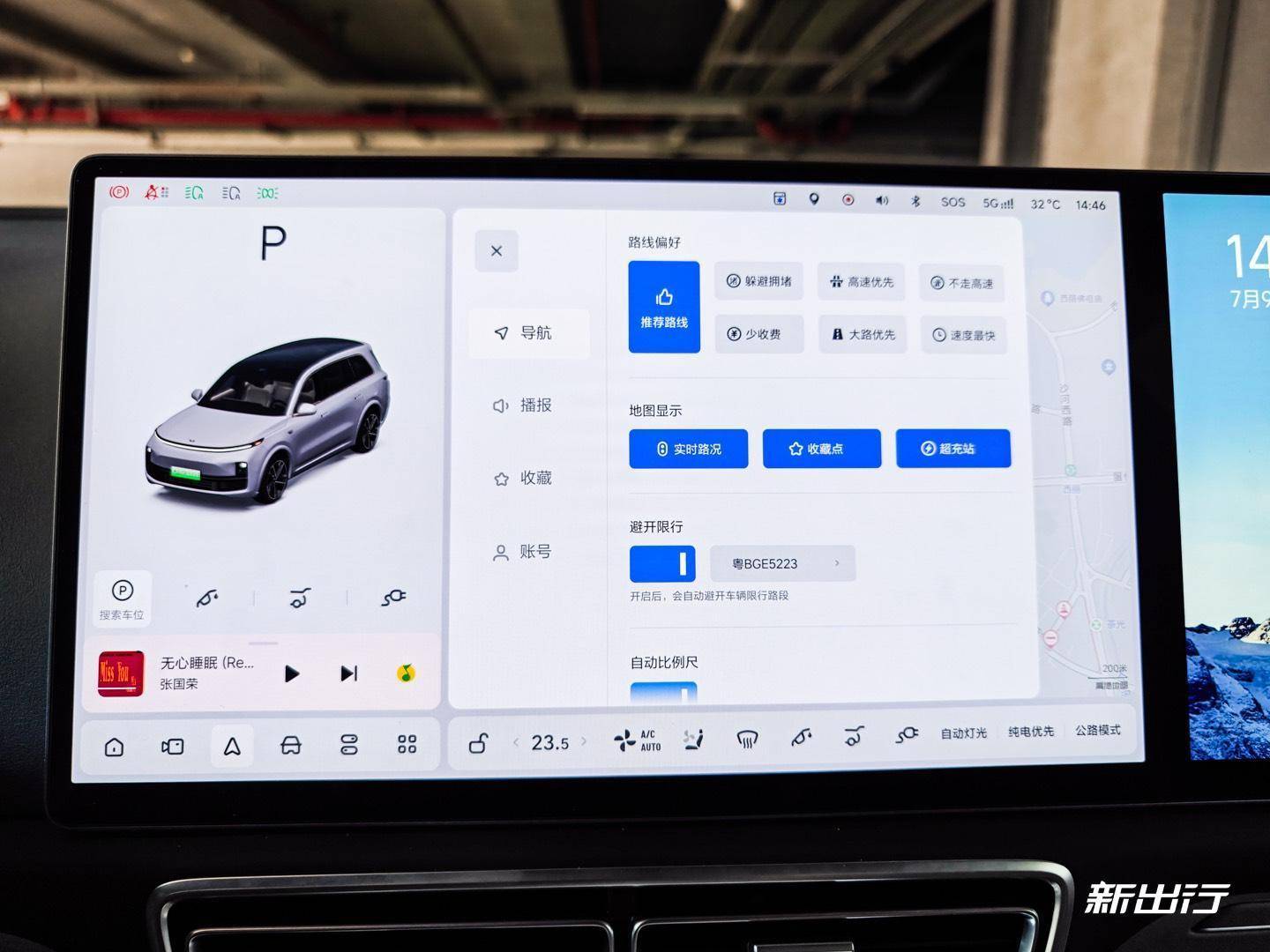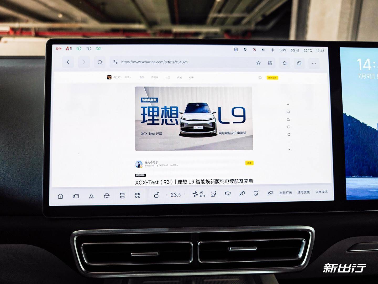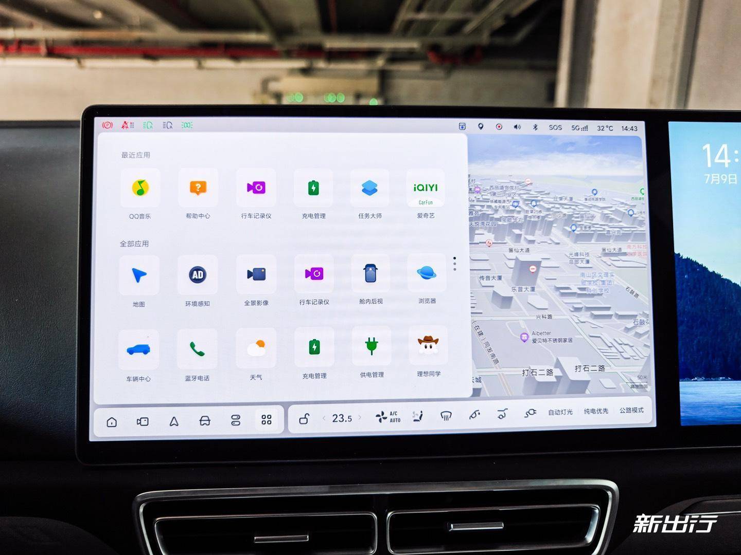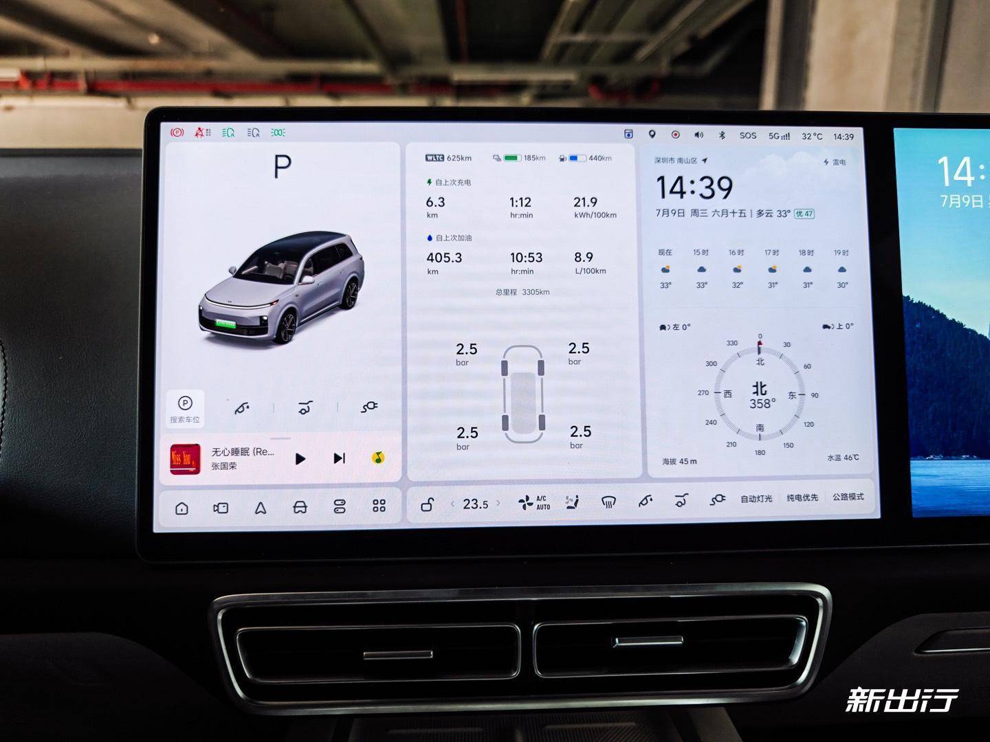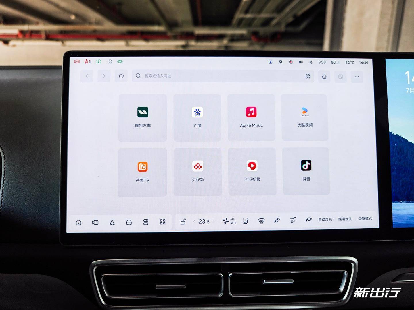 最后是后舱屏。L9 智能焕新版的后舱屏其实 UI 上是和副驾屏基本一致的,约可以看成是一块放大的副驾屏,