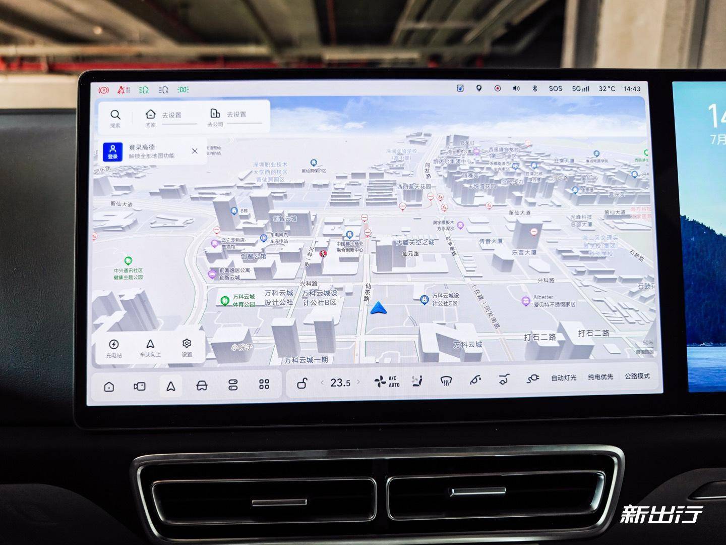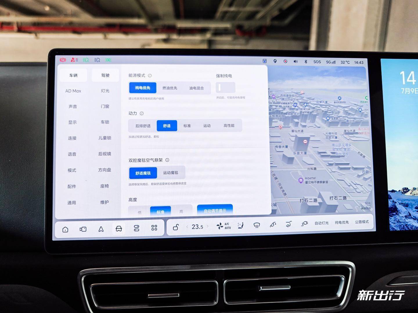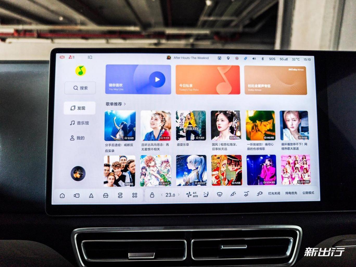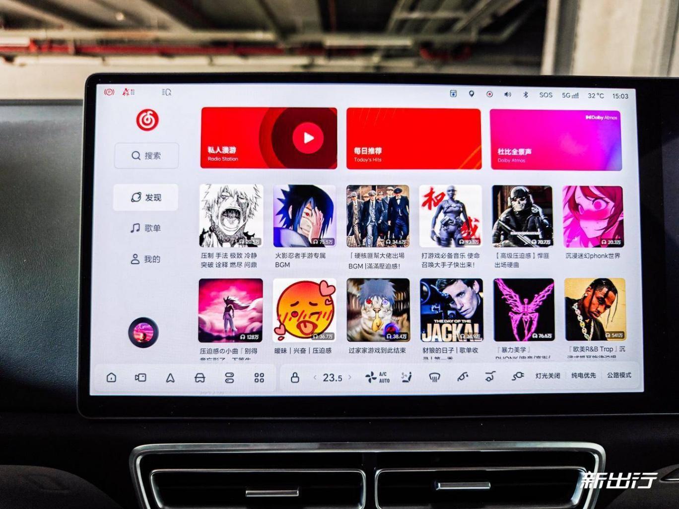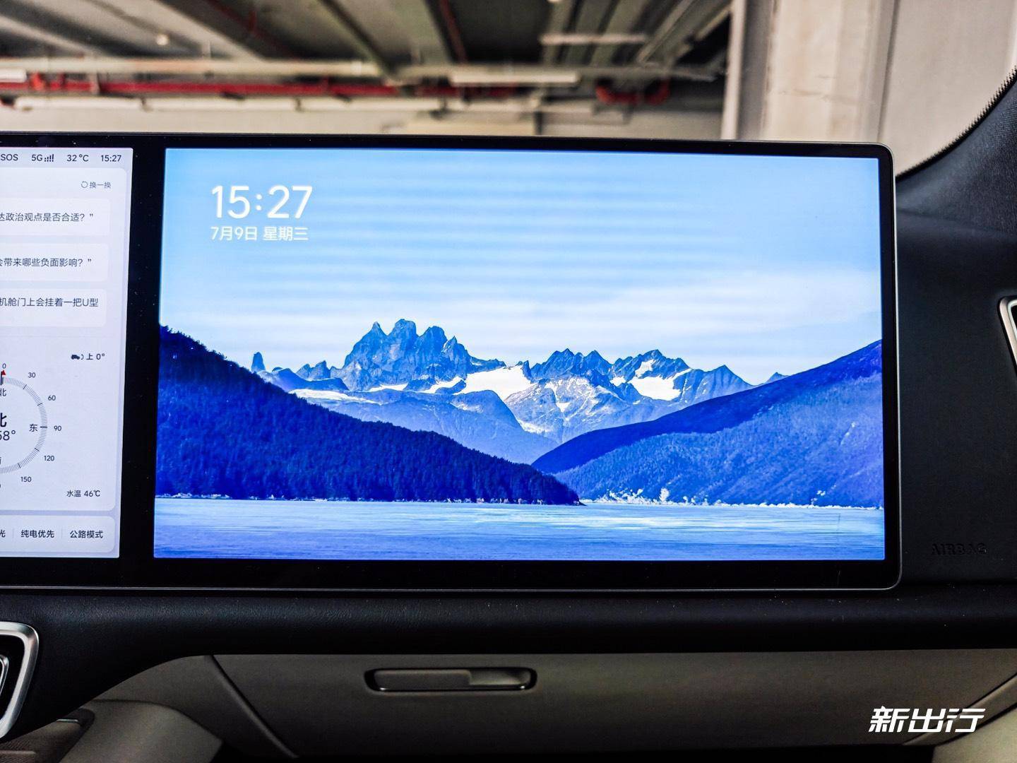 这套交互习惯之后是比较符合用户直觉交互逻辑的,瞥一眼就能观察到中控屏的状态,右侧的地图卡片便于观察,左边的 SR 卡片也能在 D 档时了解到行车或是智驾时的状态,音乐卡片的放置也恰到好处。