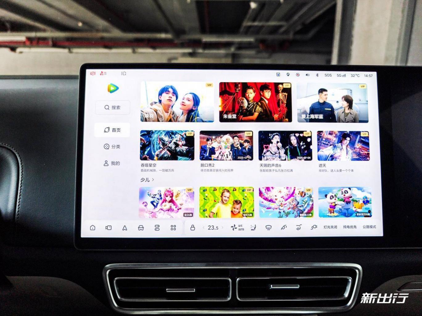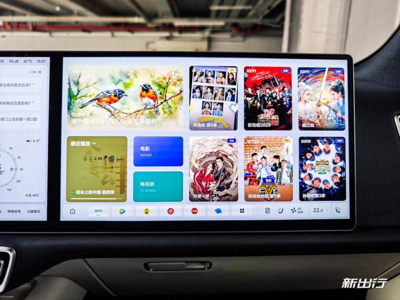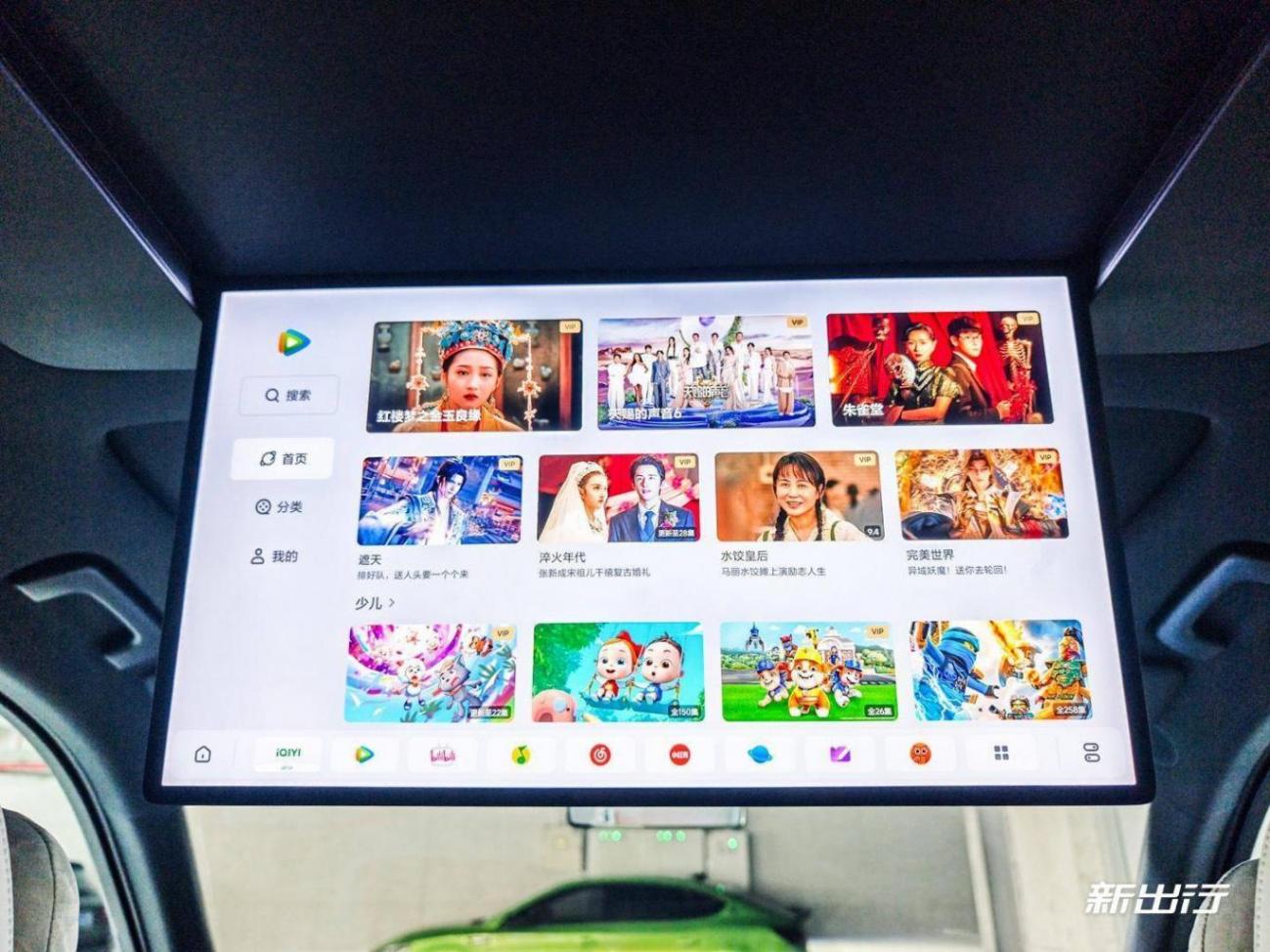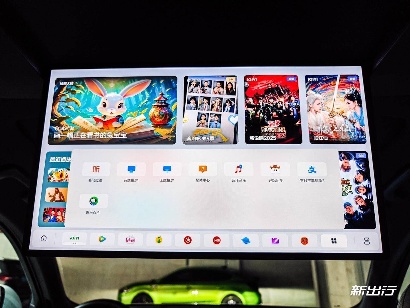 轻轻一点即可进入副驾屏的主界面。副驾屏的职责主要就是娱乐和影音,所以主界面默认就是推荐各个应用的热门视频,以及理想的 AI 绘画功能。