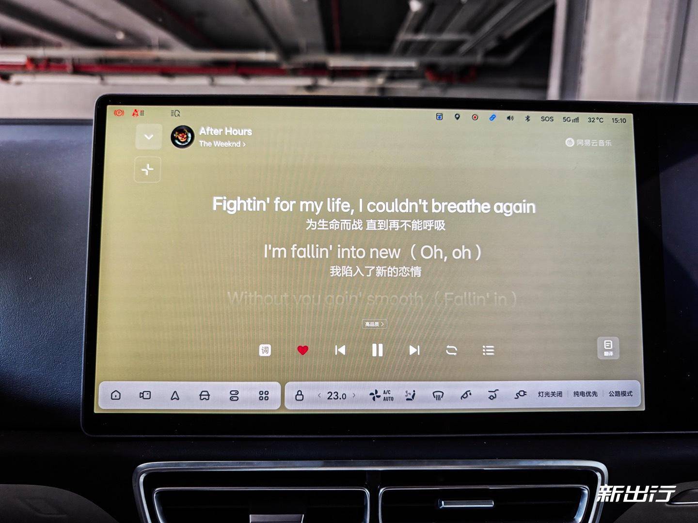 与此同时,把这个卡片向上滑动还能进入到歌词显示模式,在等红绿灯的时候看着歌词哼上两首,也是不错的放松方式。