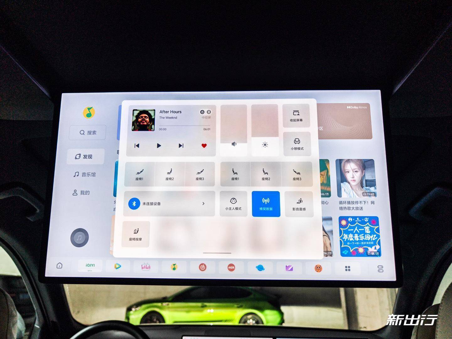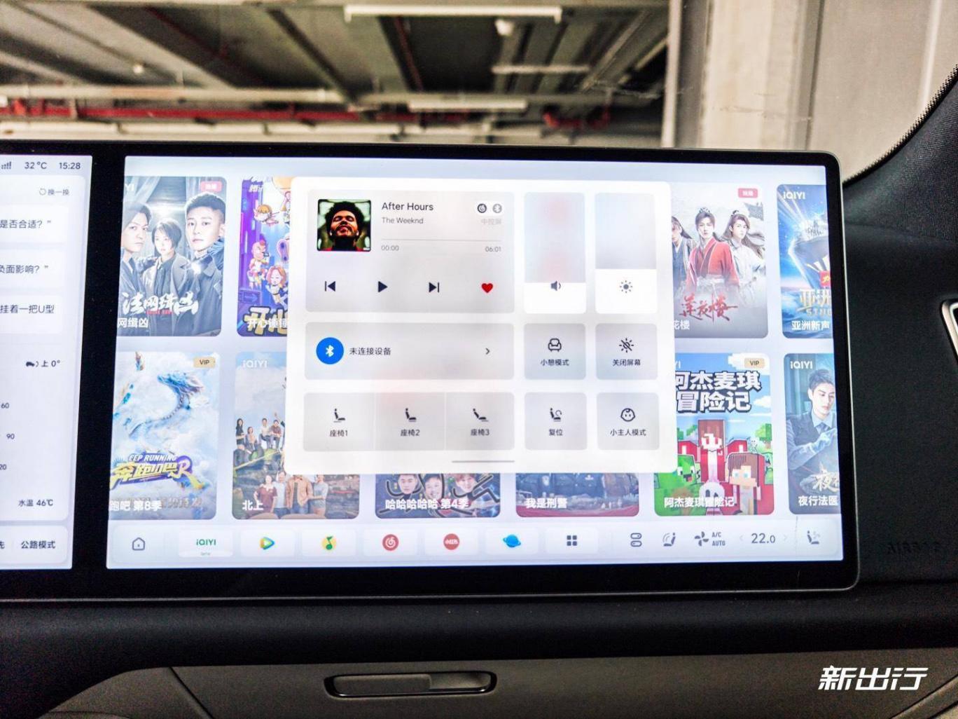 副驾屏下拉也同样是控制中心,可以快捷切换副驾座椅记忆姿态、复位座椅或者是开启小憩模式。底部 DOCK 栏除了快捷开启应用之外,还能快捷开启座椅按摩、调节空调或是座椅通风/加热,和主驾屏一样点按去起来都是比较符合用户的第一直觉的。