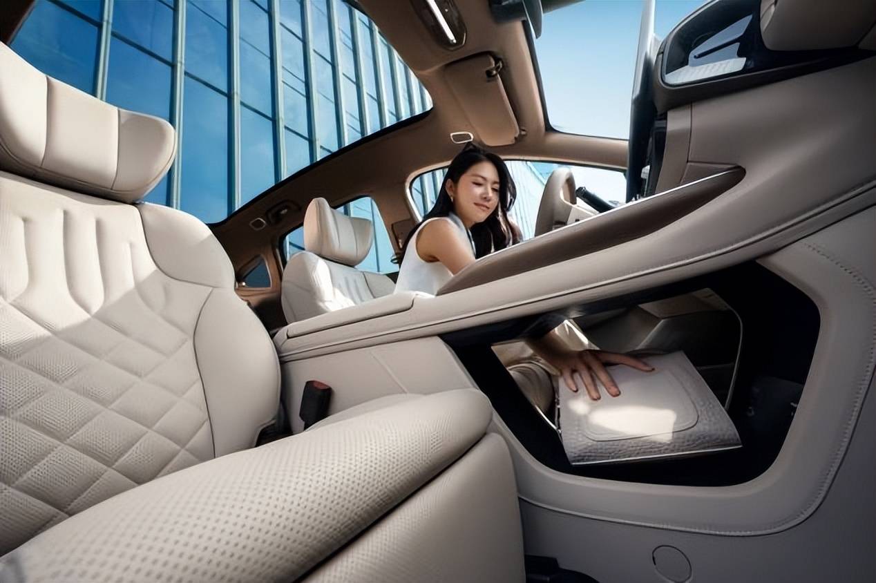 昊铂 HT 还贴心地为后排设计了诸多实用小细节。带娃长途出行时,后排小桌板可放置奶瓶、玩具,方便孩子边吃零食边追剧,家长也能利用小桌板临时办公。隐藏脚蹬的设计,让长途旅行时脚部有更舒适的支撑,进一步提升了后排乘客的舒适度。无论是家庭日常出行,还是商务通勤,昊铂 HT 的空间和车内舒适感营造都能很好地满足需求。