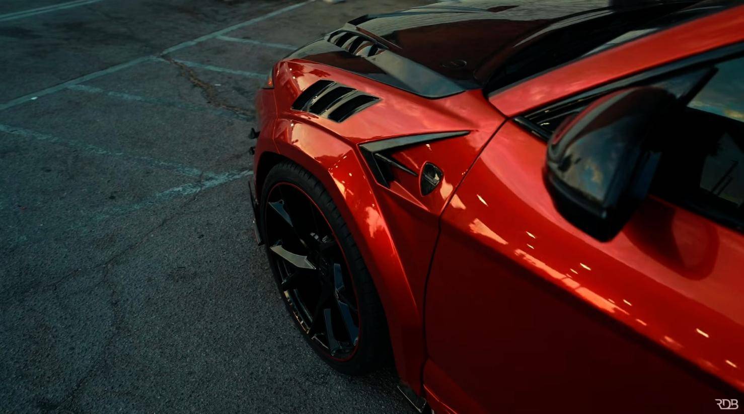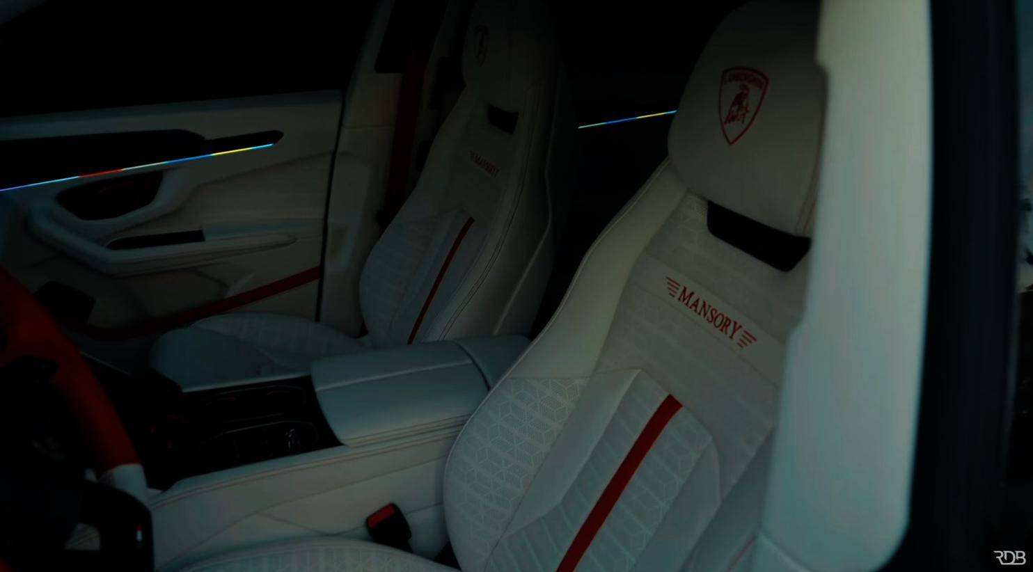 既然使用了MANSORY的外观套件,整体风格是相当夸张的。车身采用深红色涂装,配以一些锻造碳纤维装饰。车身红色漆面是RDB LA公司亲自喷涂的,车身宽体套件来自MANSORY Venatus系列。新车内部采用大量白色皮革包裹。