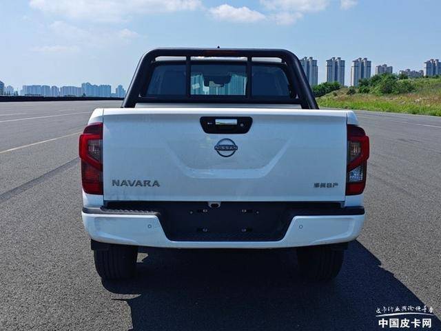 根据申报信息显示,柴油纳瓦拉车身尺寸为5282*1850*1849mm,货箱尺寸1510*1562*475mm,轴距3150mm。额定载质量490kg,轮胎尺寸255/60R18,准牵引质量2.5吨。后部悬架有两种选择,包括螺旋弹簧多连杆悬架和5片钢板弹簧的形式。