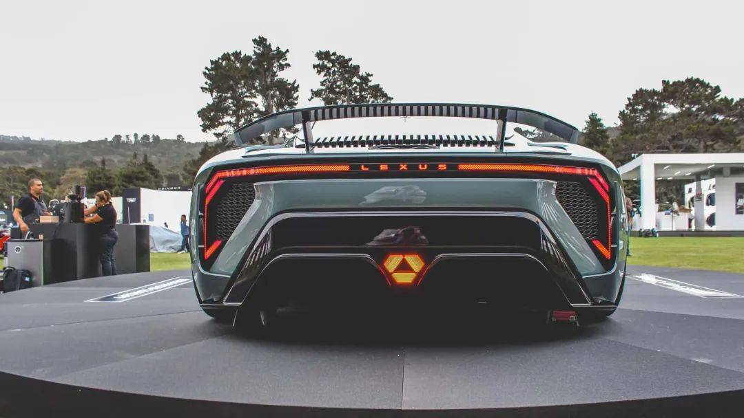 车尾部分,新车尾灯设计尤为引人注目,采用贯穿式LED尾灯设计,中央镶嵌可发光的雷克萨斯徽标,配备尺寸夸张的主动式扰流尾翼,视觉层次感更丰富的同时也强化了赛车氛围。排气方面,新车采用类似迈凯伦的向上开启式排气布局,并隐藏于尾翼下方,整车看上去运动感十足。