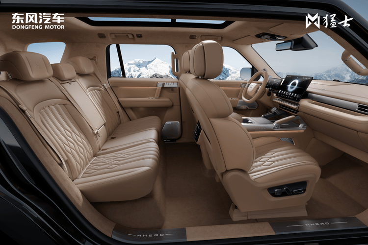 猛士M817打破了传统硬派越野车“粗犷=硬核”的刻板印象,将东方美学与舒适体验深度融合。车身设计灵感源自“东方醒狮”,前大灯还原古代兵器“戈”的凌厉造型,尾灯则如利剑出鞘,尽显锋芒。座舱内大面积真皮包覆与金属饰条交织,搭配256色无极呼吸氛围灯,营造出兼具机械感与科技感的豪华氛围。