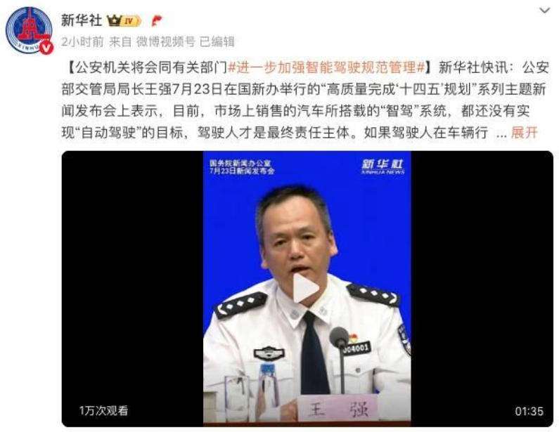 同时在7月23日,国务院新闻办举行新闻发布会,公安部相关负责人强调,目前国内市场汽车搭载的 " 智驾 " 系统都不具备 " 自动驾驶 " 功能,都还暂时停留在辅助驾驶阶段,现阶段辅助驾驶不等于自动驾驶,驾驶人在驾驶过程中一旦 " 脱手脱眼 ",可能面临严重交通安全隐患和法律风险,包括民事赔偿、行政处罚和刑事追责三重法律风险。也就是说,由系统辅助驾驶人来执行一些动态驾驶的任务,车辆依然需要人来操控,驾驶人才是最终的责任主体。