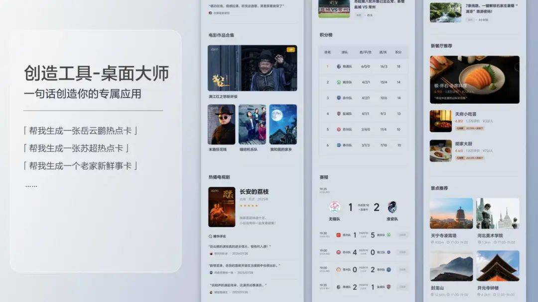 “桌面大师”也相当有趣,可以直接借助AI生成代码。只需要车主一句话,理想同学智能体就能自主生成个性化的桌面卡片,目前主要覆盖在资讯、新闻、车控管理和小游戏等方面,将来还会持续进化。