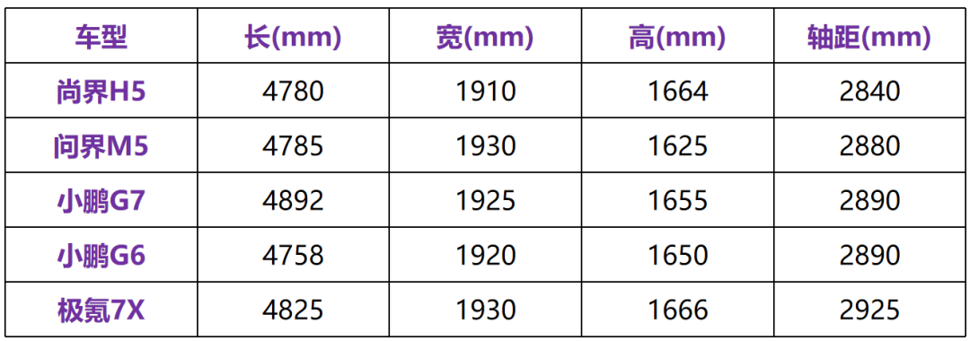尺寸方面,尚界H5算是一台中型SUV,体量和问界M5、小鹏G6都比较接近。不过在轴距方面,尚界H5比其它几款车型都要短一些,在整体中型SUV市场里不算突出。