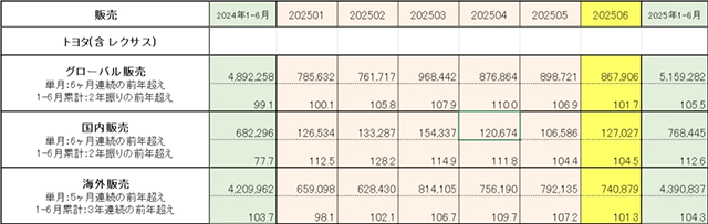 7月30日,丰田汽车发布了最新全球销量数据:2025年上半年,累计销量515.9万辆,同比增长5.5%,再次位居全球榜首。